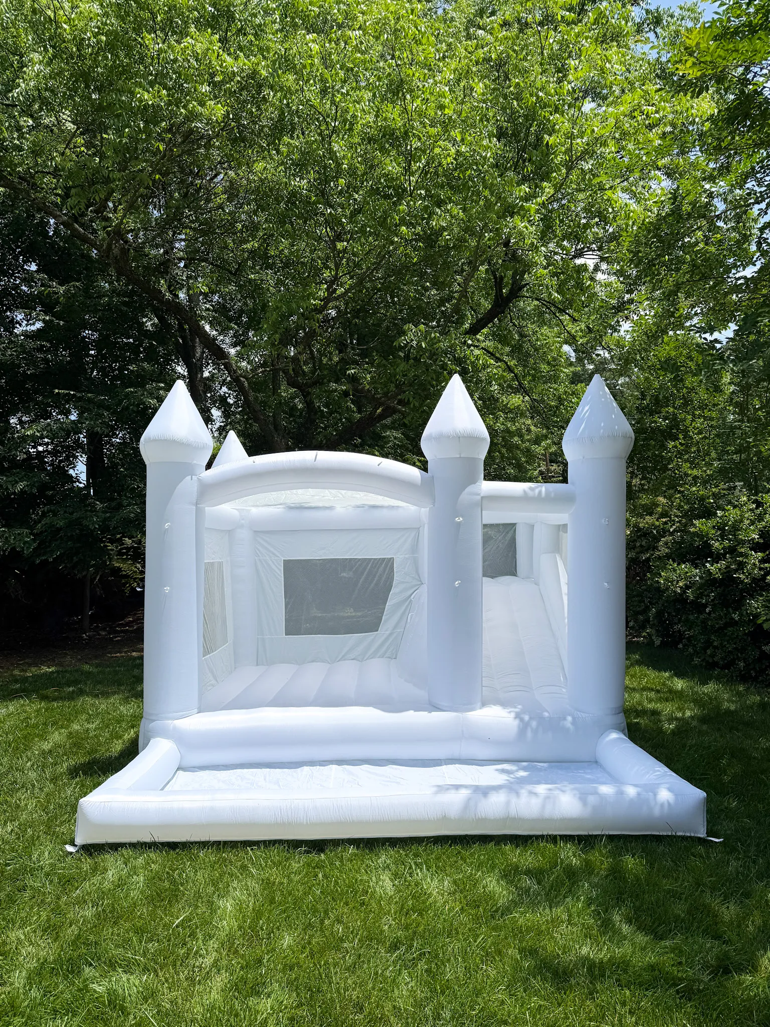 Elevate your event with our Modern White Bounce House, featuring a sleek, all-white design and a built-in mini slide for…